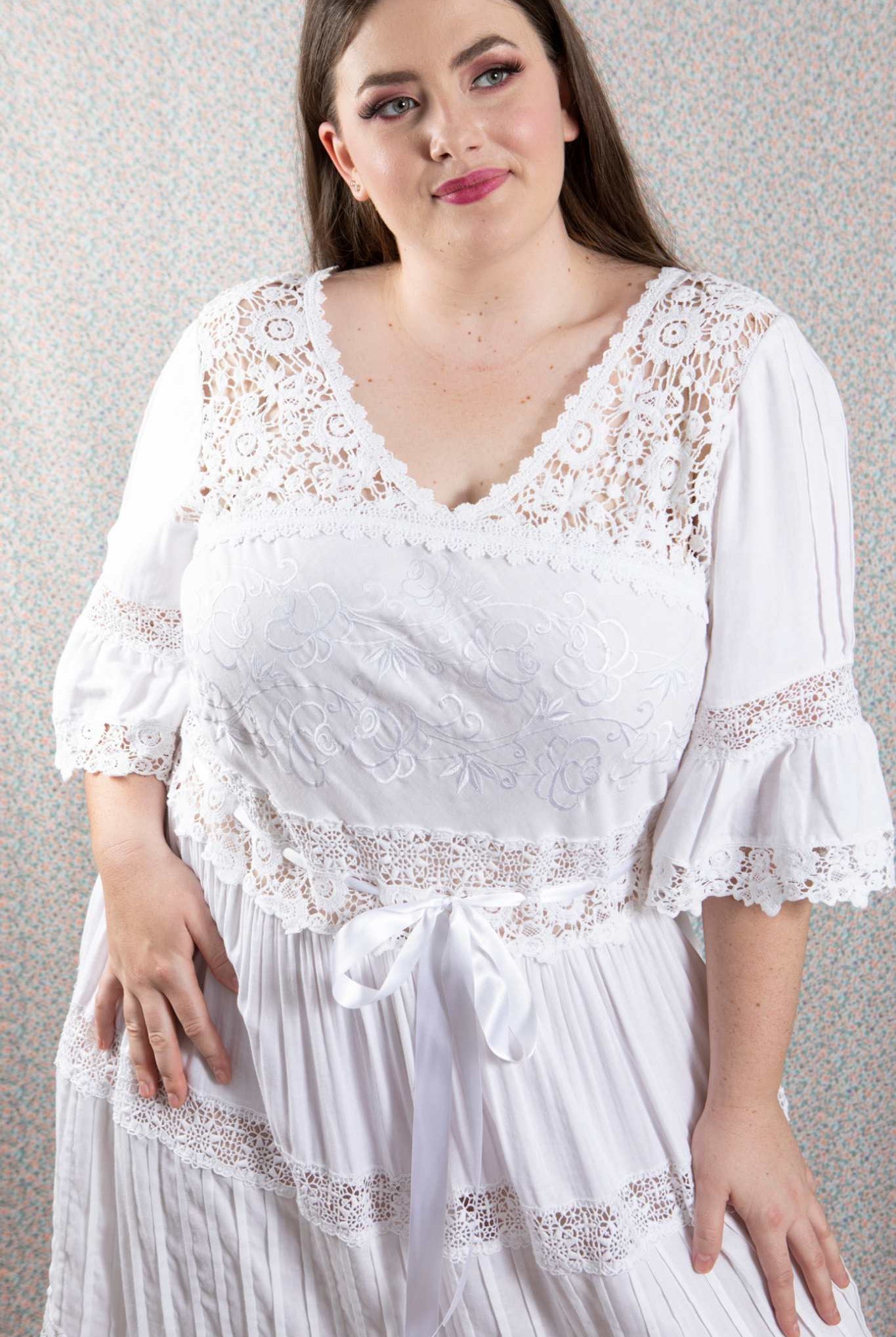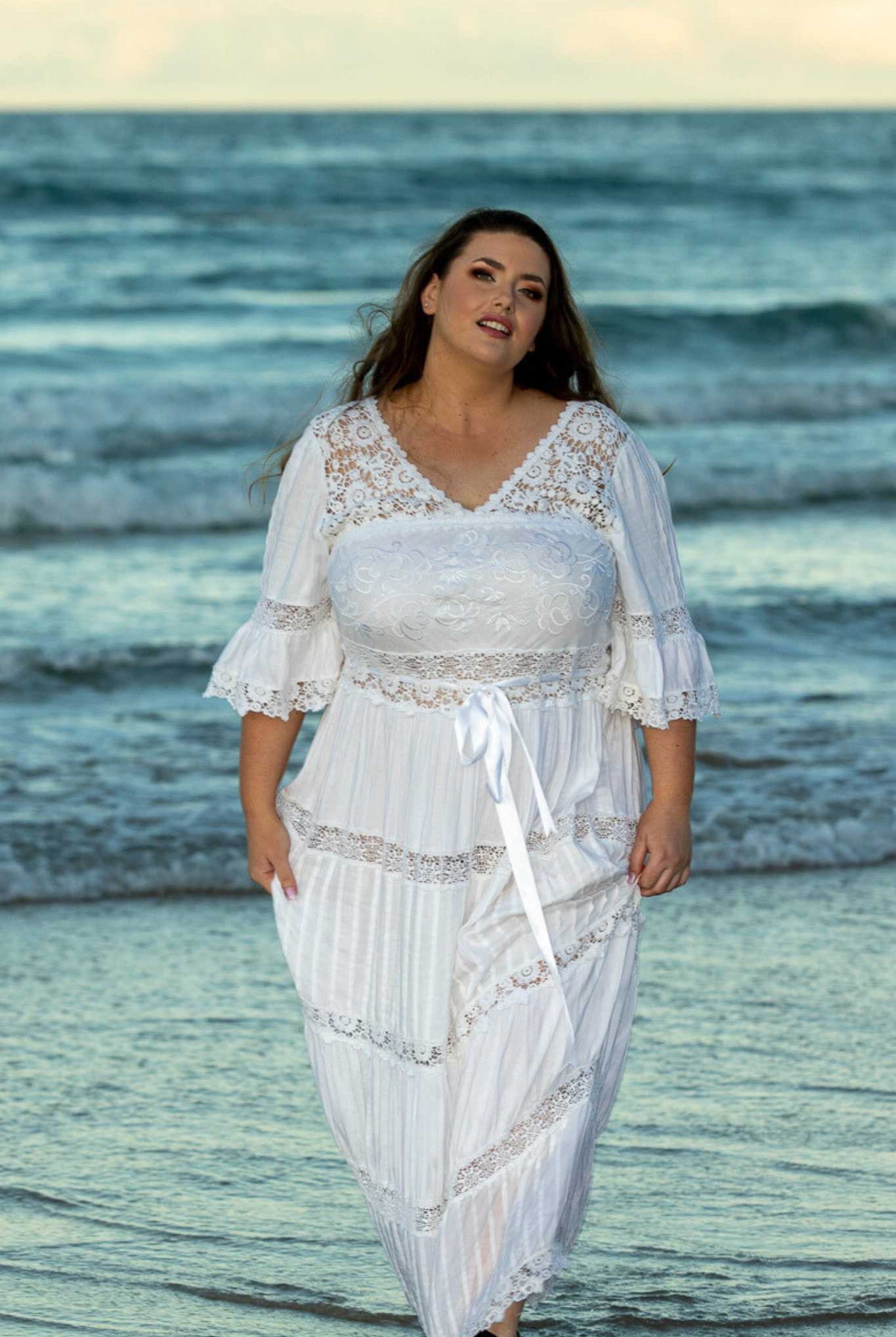 Most of the garments are made in-house, but with imported items, I have teamed with ethically run manufacturers who have employees over 21 years of age, and are family oriented businesses.  They are also specifically operating to produce plus size garments, and I have personally interacted with them at length on the design, cut and pattern-making process to make sure garments are true to AU/UK/USA plus sizing.  These partnerships enable me to source more wonderful textiles and laces, printed fabrics to my own designs, and to encompass the look I want in boho maxi dresses for example, plus the ease of having ready to ship stock for customer satisfaction.