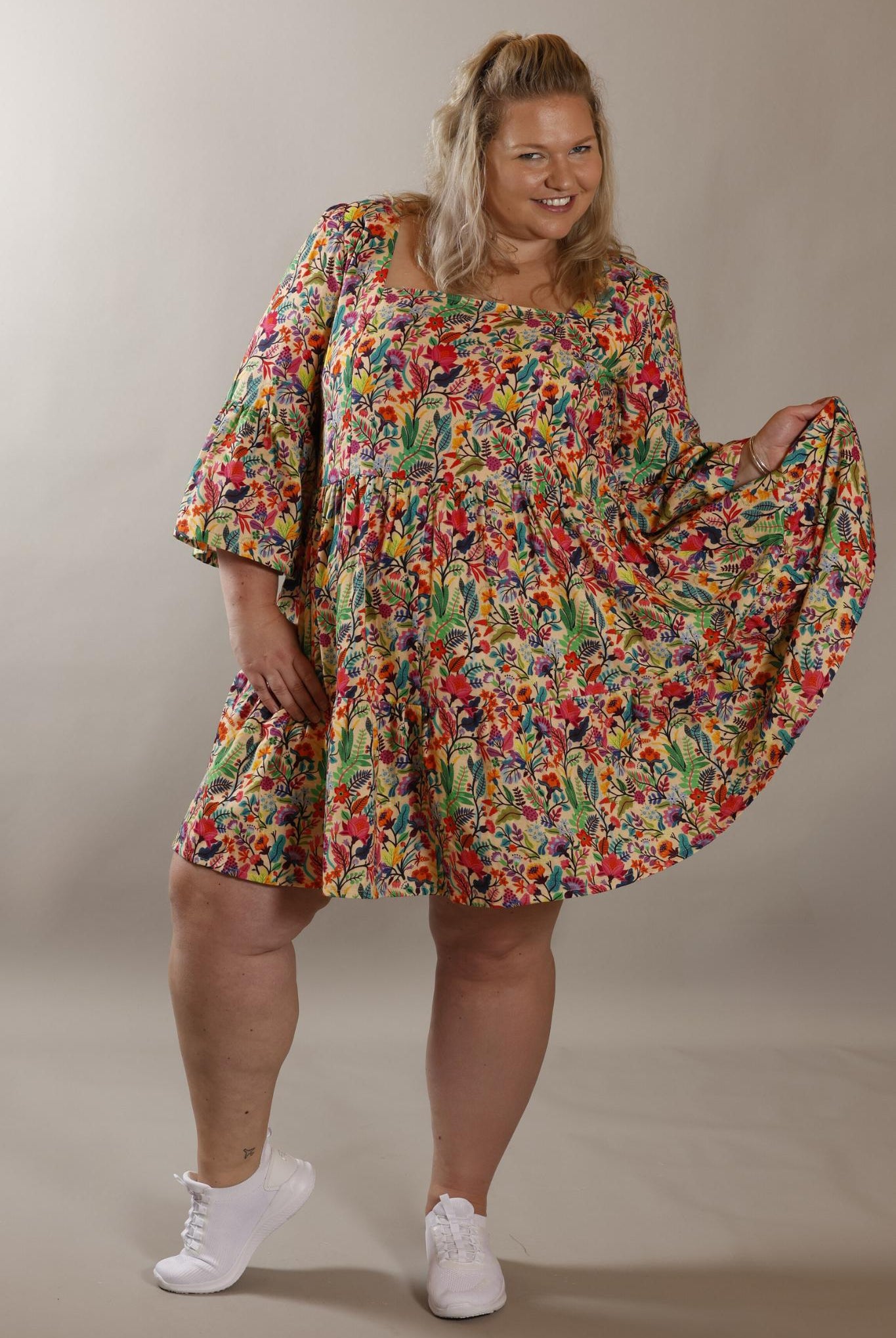 I'm Evie, and have been designing and manufacturing clothes for 35+ years. Fifteen years of that was also spent selling my own label in retail, where I learnt from my customers their needs and wants. I have always specialised in plus sizes, and I am a strong believer in the body positivity movement. Being a curvy woman, I still wanted to wear very fashionable clothing that had cut and elegance, and so my label was born.