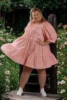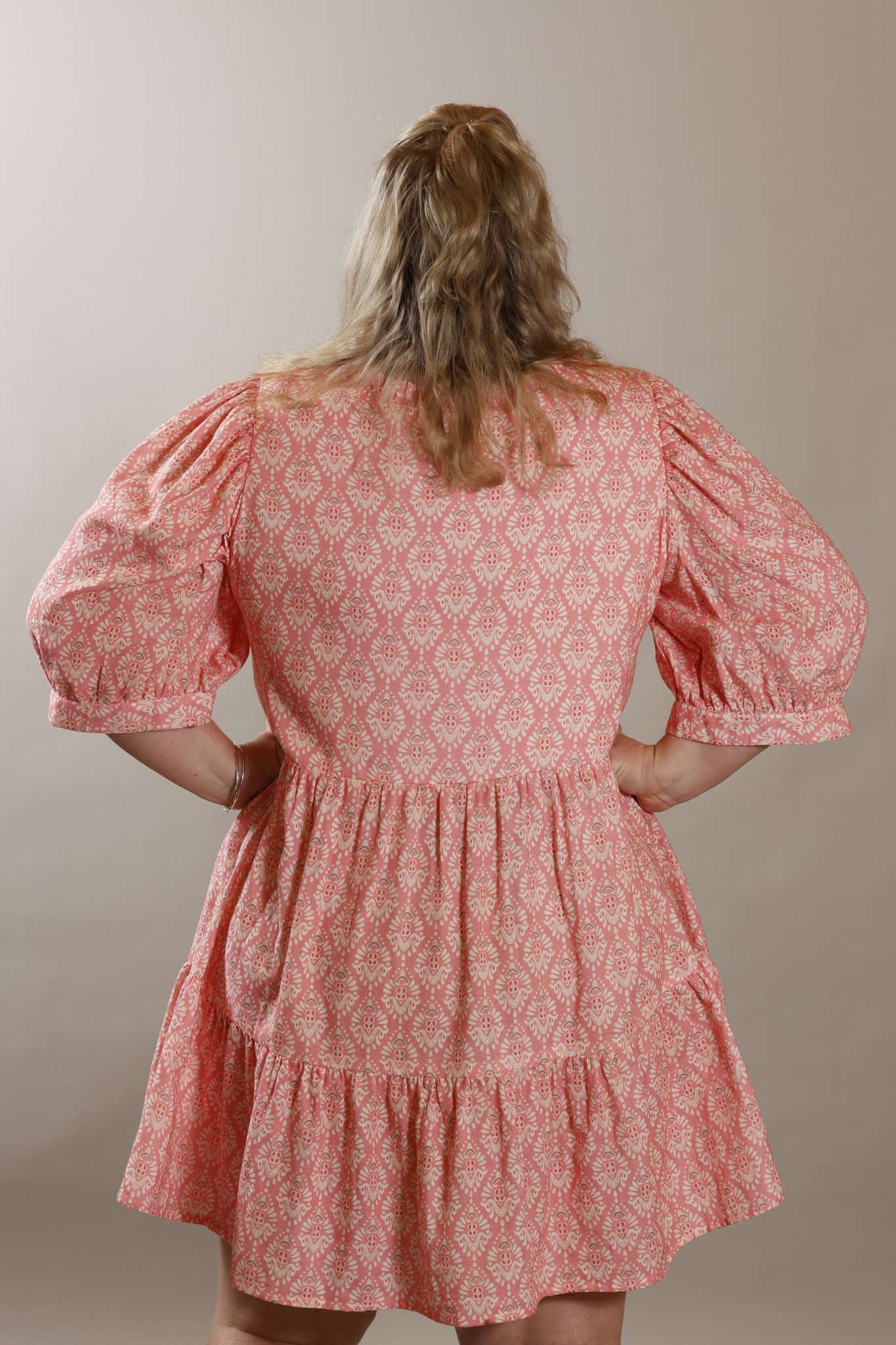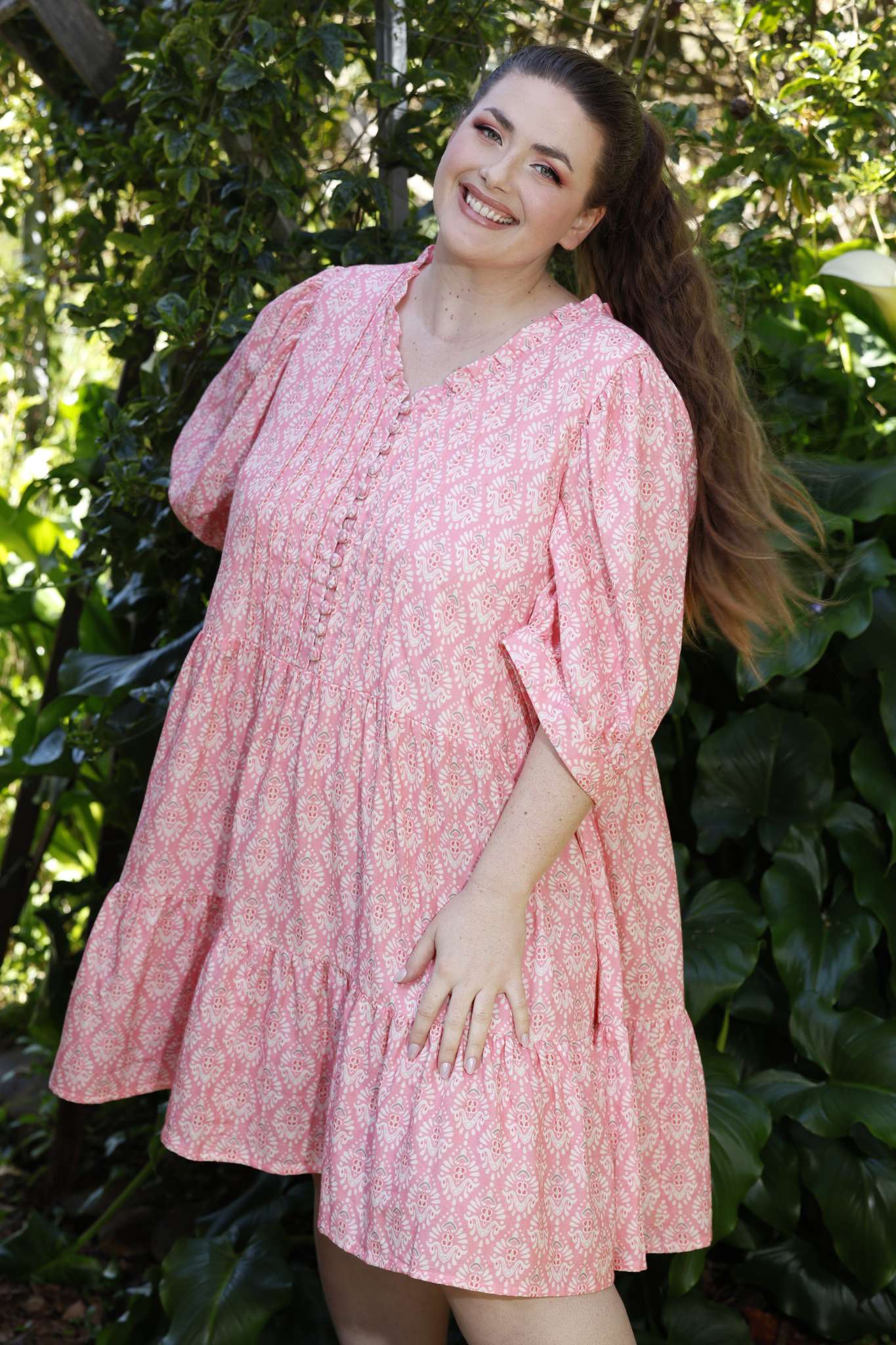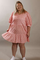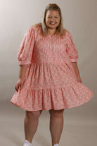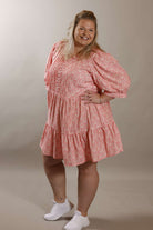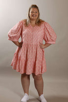 PLUS SIZE and ALL SIZES 100% soft cotton dress in pink and white print. This dress is a loose fitting smock style, which is so easy to wear for summer or layered up for cooler weather.