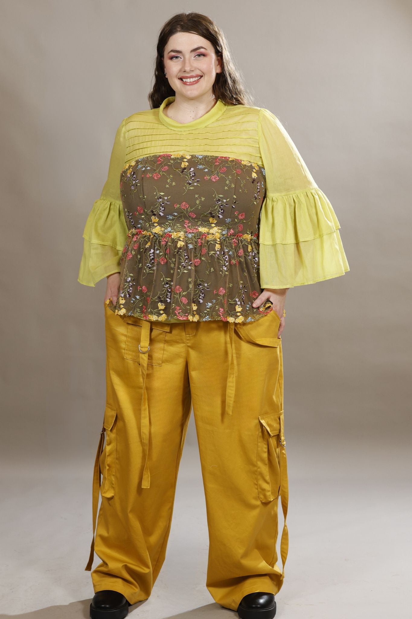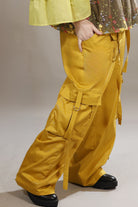 100% PRE-SHRUNK pure cotton drill in an on-trend style and colour.  These slouchy fit mustard yellow cargo pants have style and dash.
