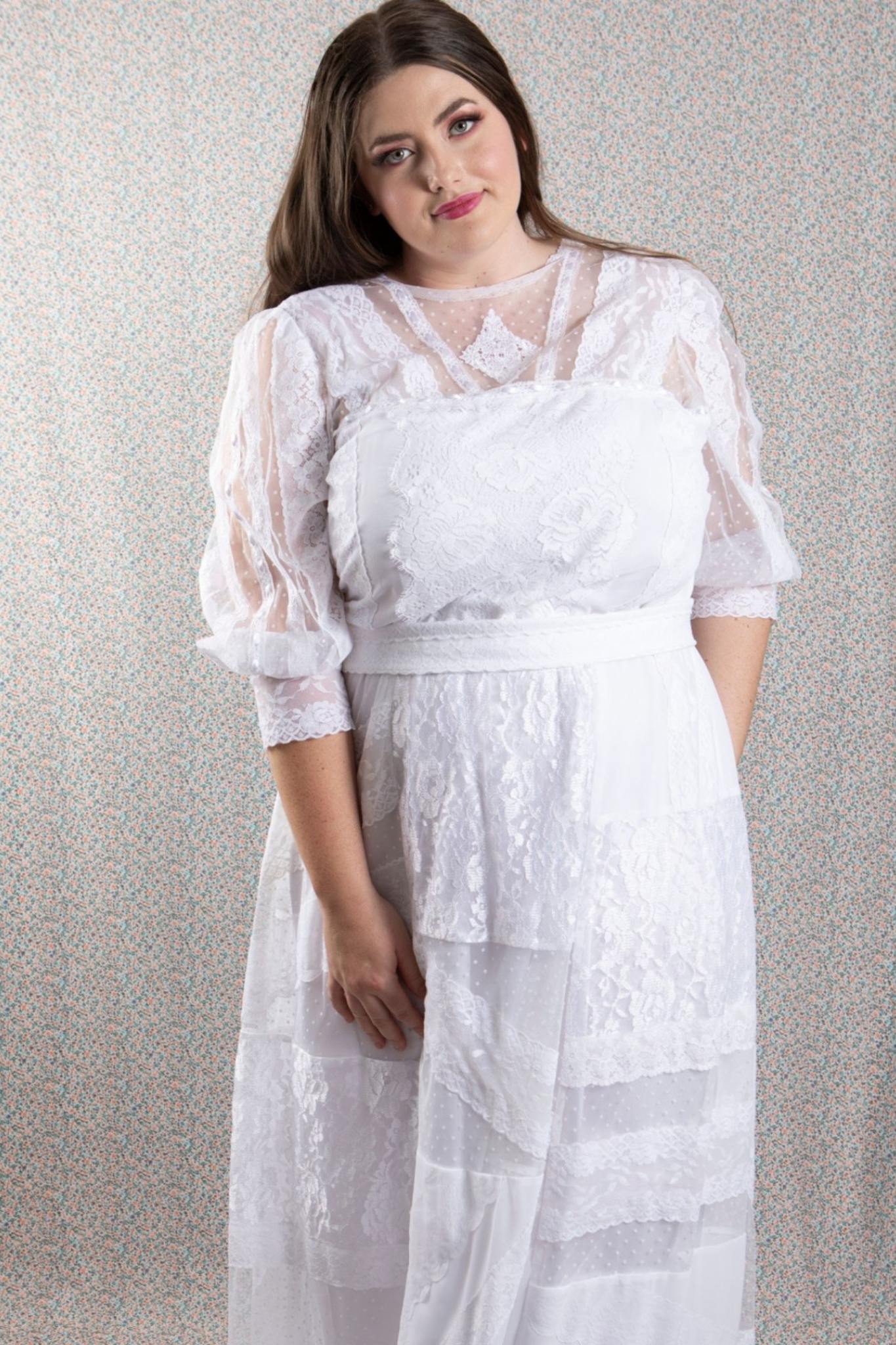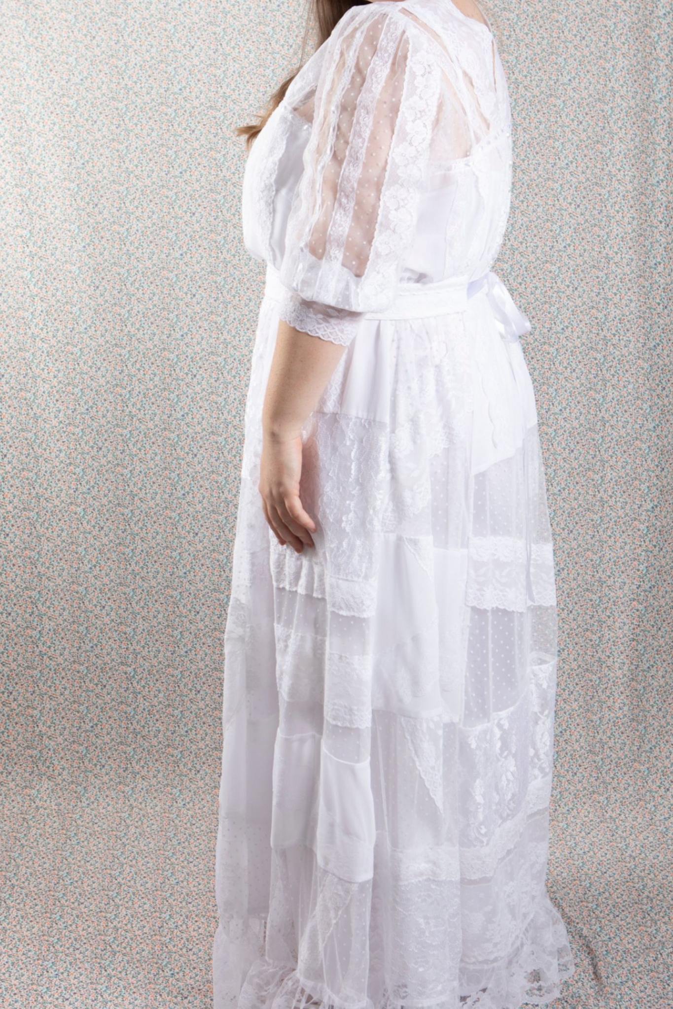 PLUS SIZE and ALL SIZES white chiffon and lace vintage style/boho/shabby chic bridal gown, beach or garden wedding dress.