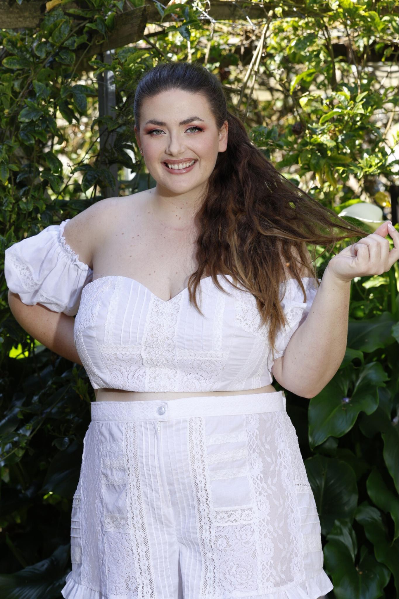 PLUS SIZES and ALL SIZES - this heavenly boho/vintage styled bralette/crop top is absolutely to die for, pictured with SHABBY CHIC SHORTS - (separate purchase) the perfect summer outfit from casual to dressy.