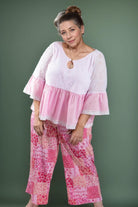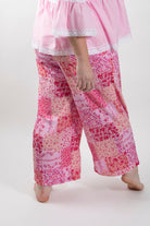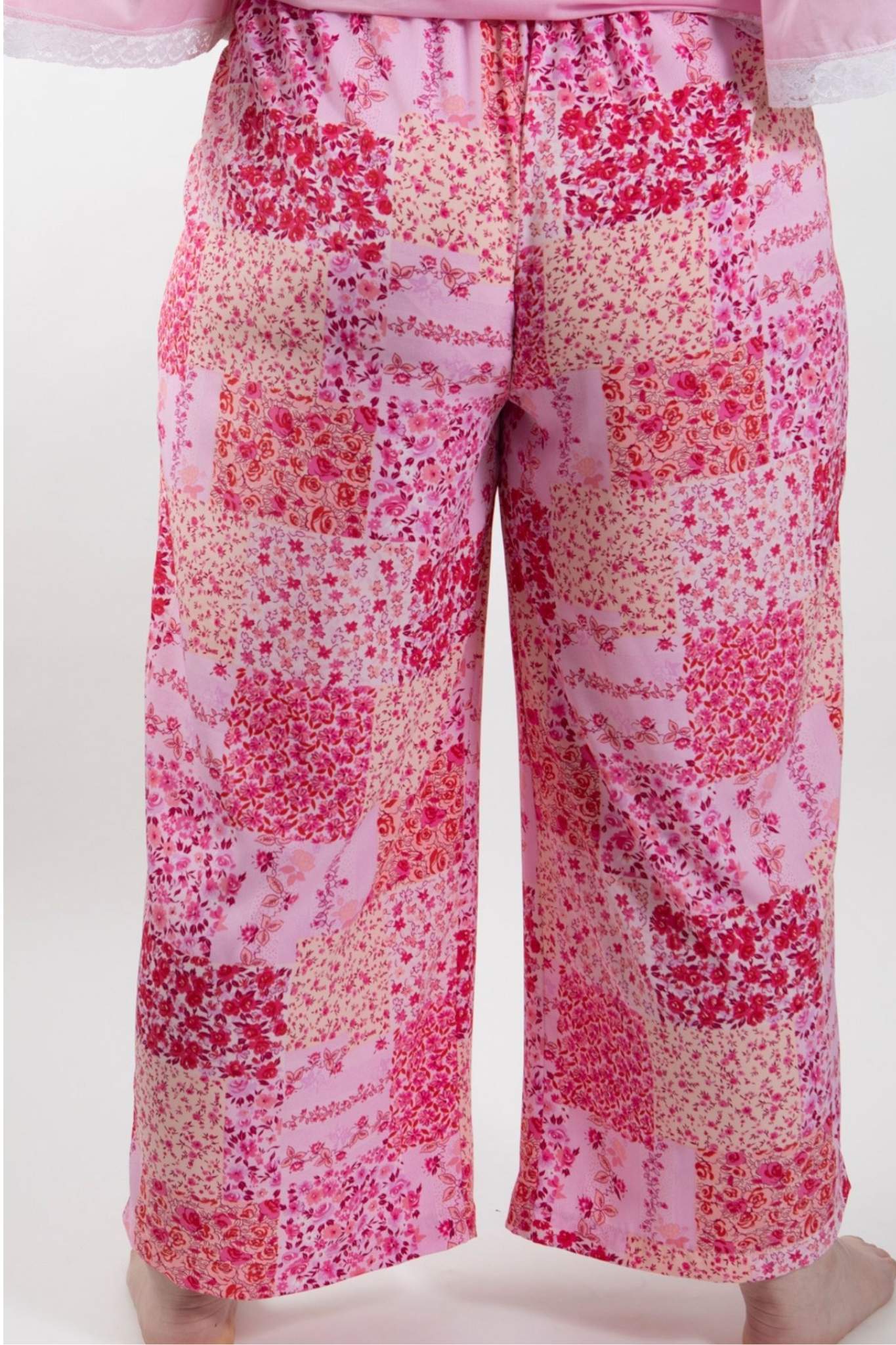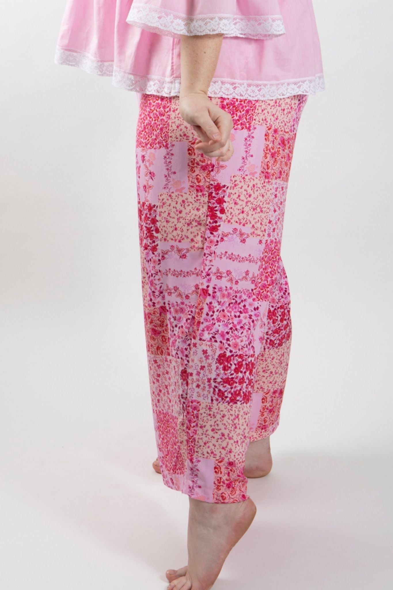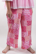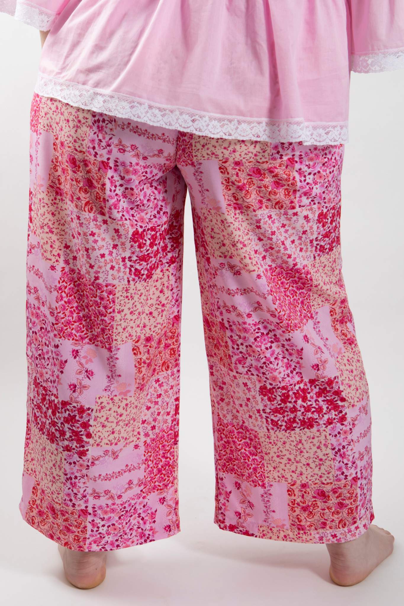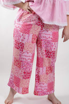 PLUS SIZE and ALL SIZES on trend bright pink patchwork print p.j. / lounging pants.