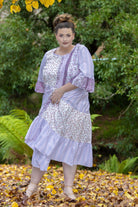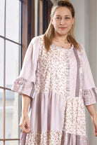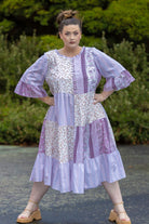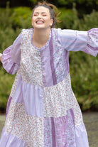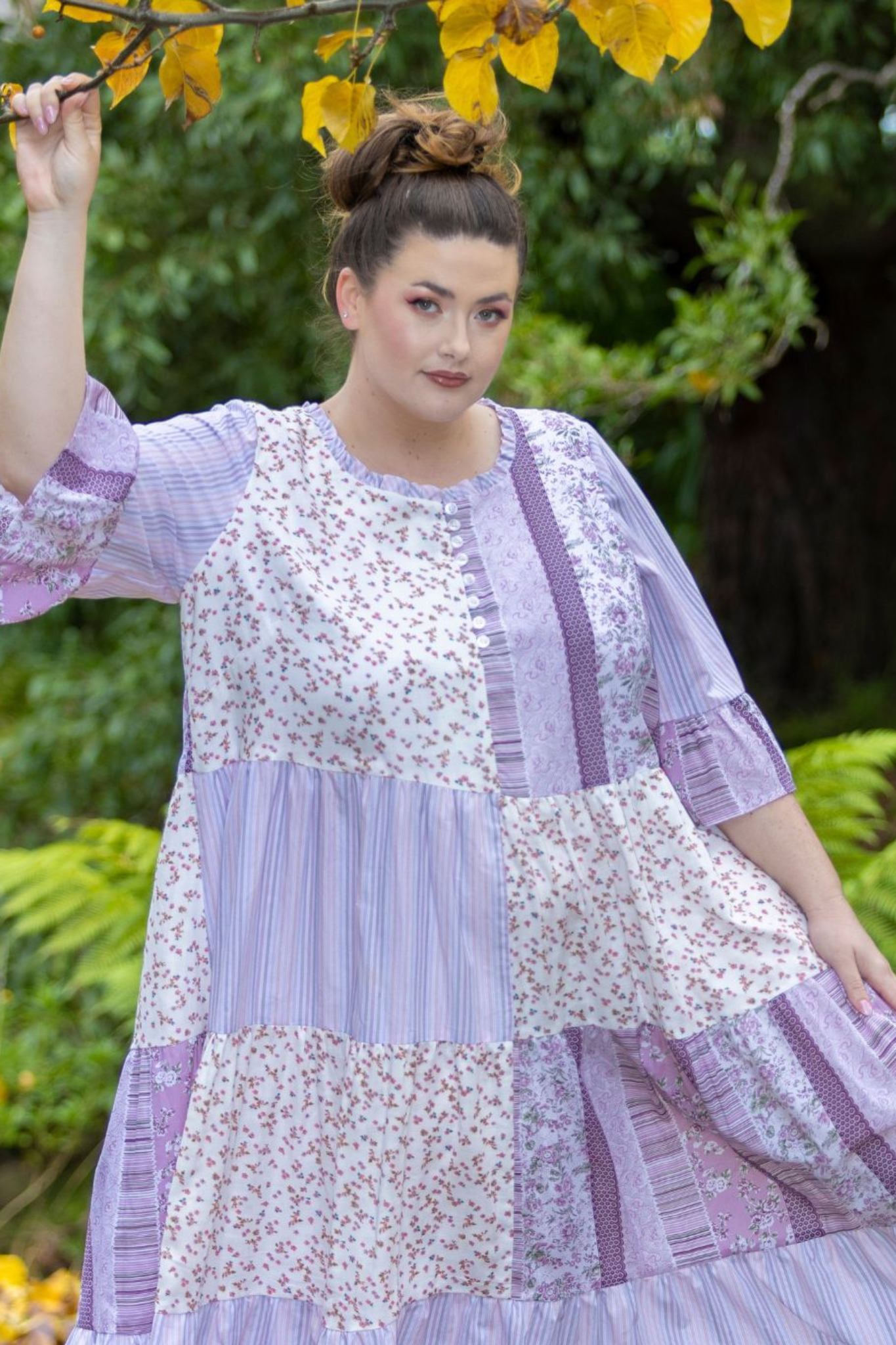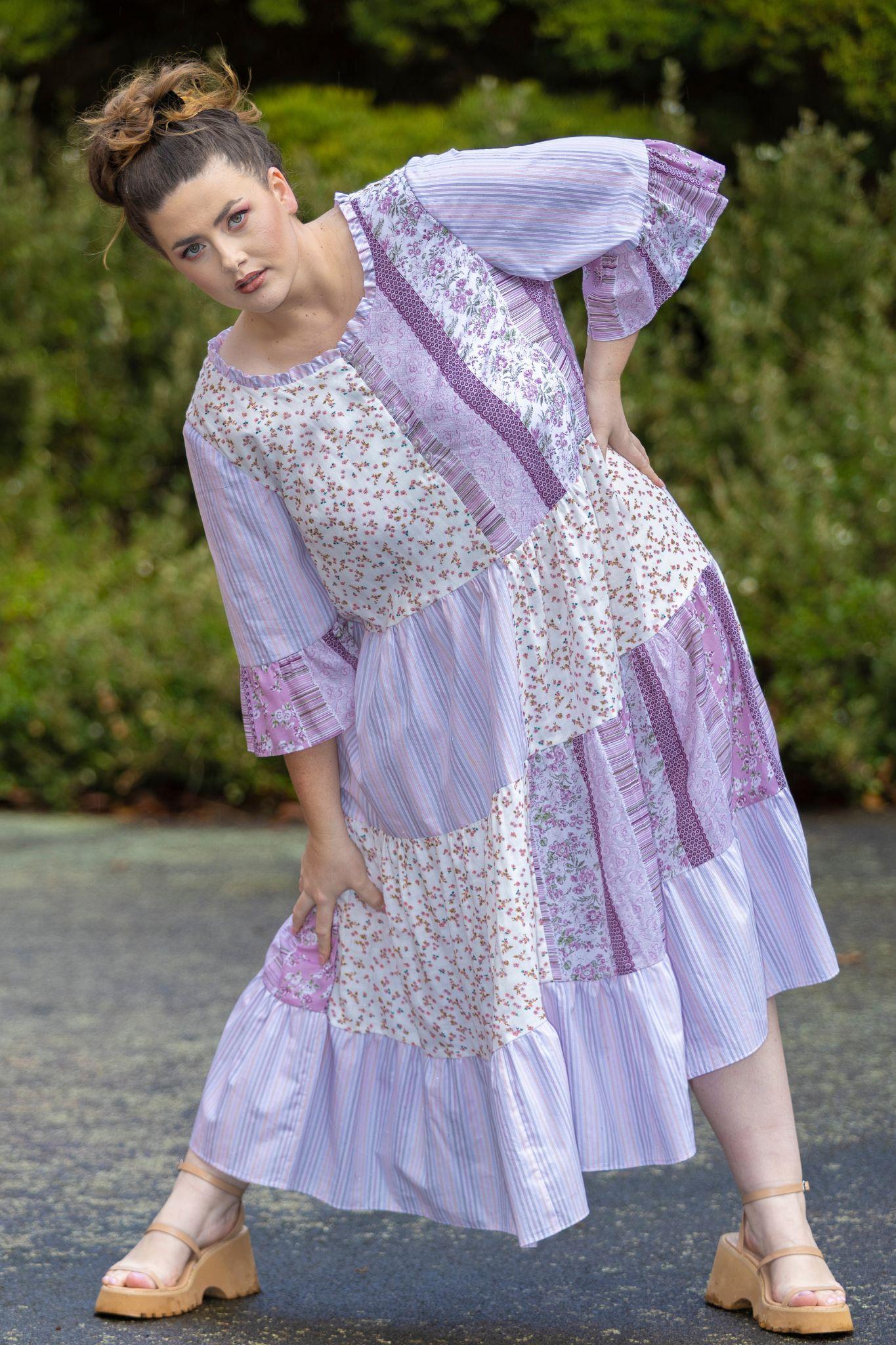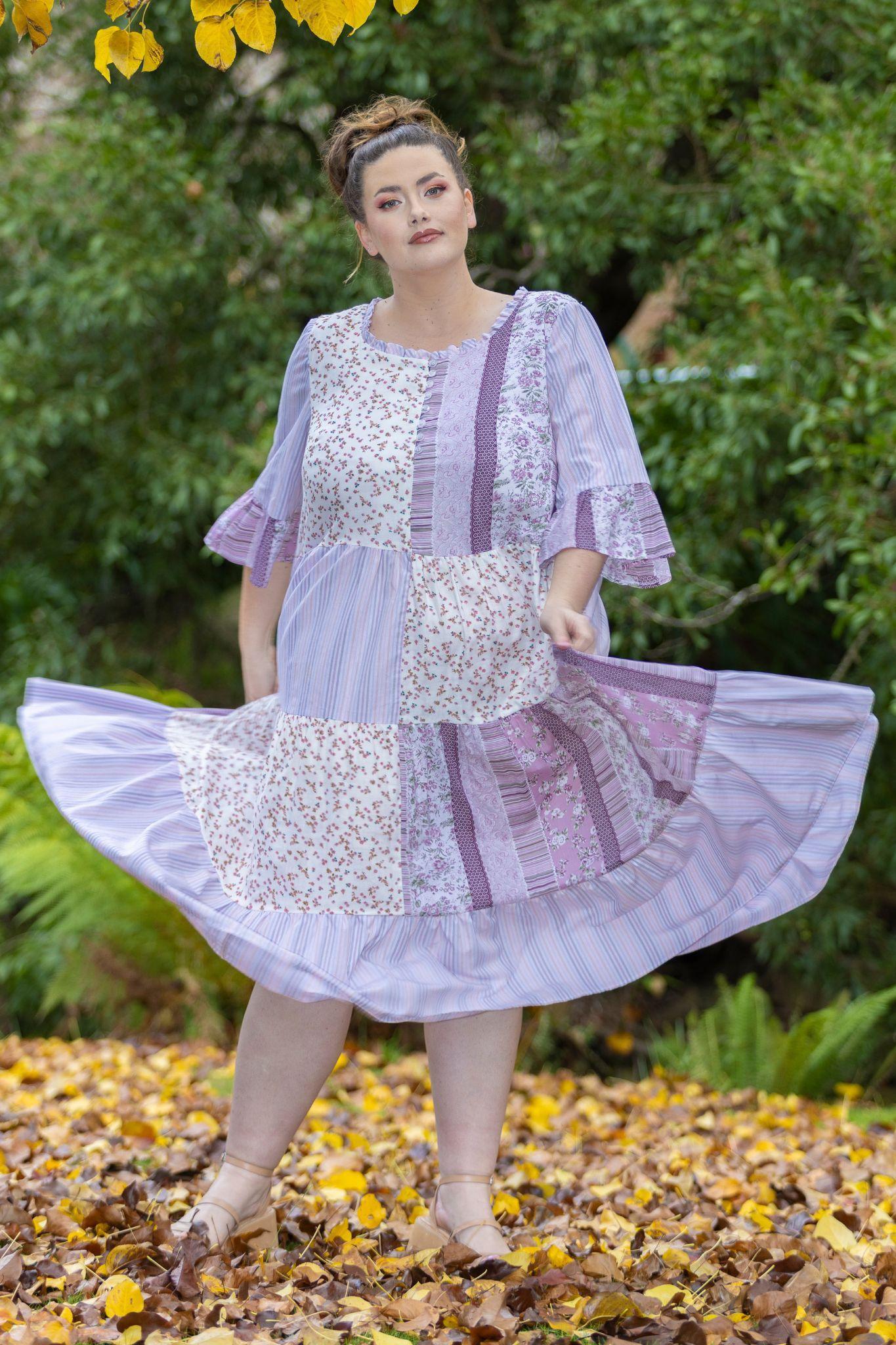 PLUS SIZE and ALL SIZES pure cotton smock style midi dress in mixed patchwork design in vintage rose and pink hues.